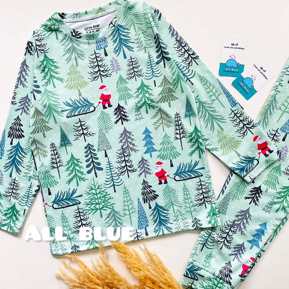 ست راحتی آستین بلند شلوار بابانوئل و کاج 7تا15 سال(71068)