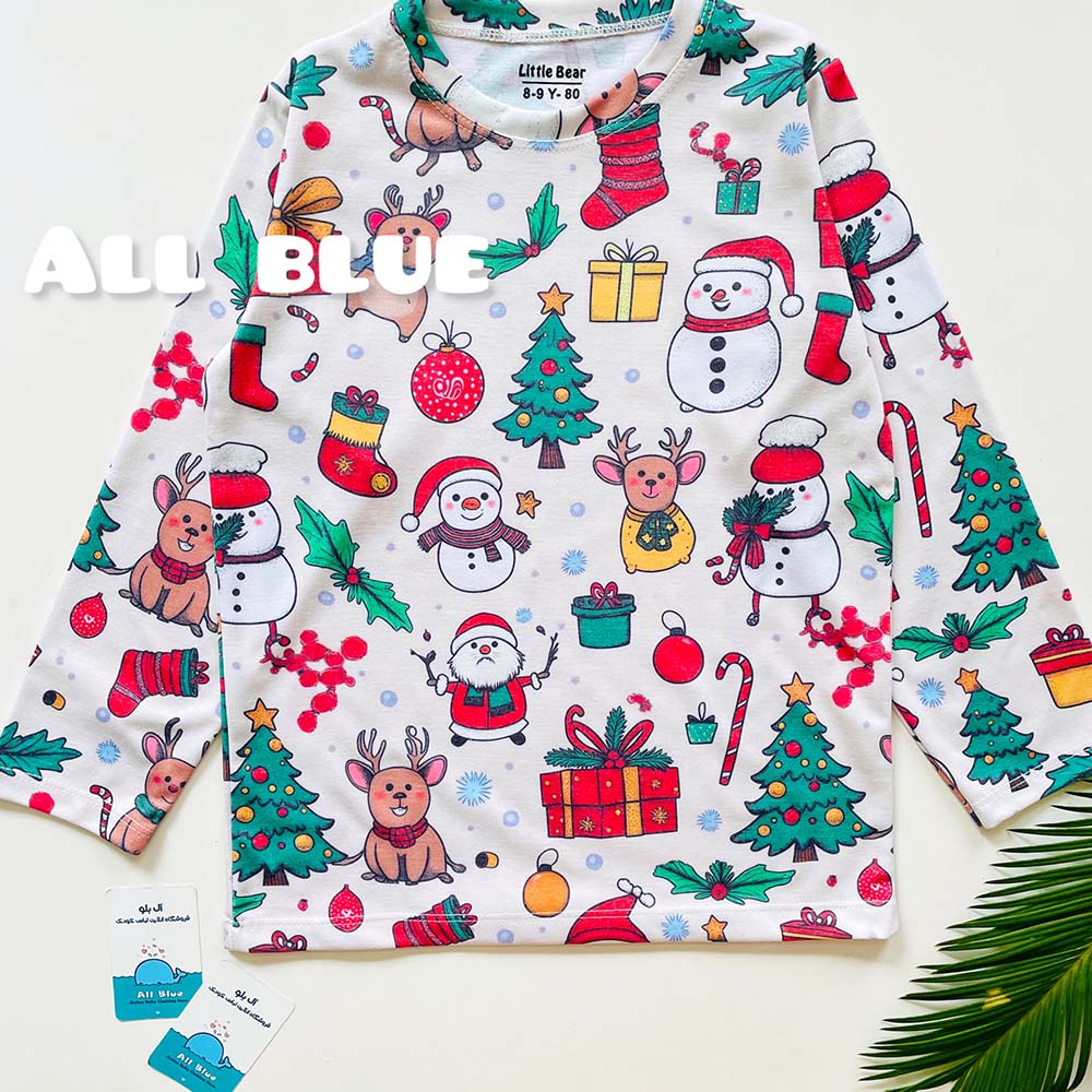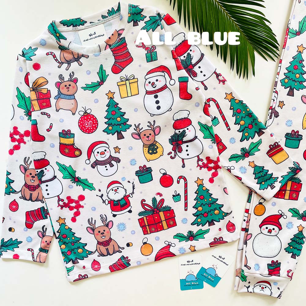 ست راحتی آستین بلند شلوار دنیای کریسمسی 7تا15 سال(71075)