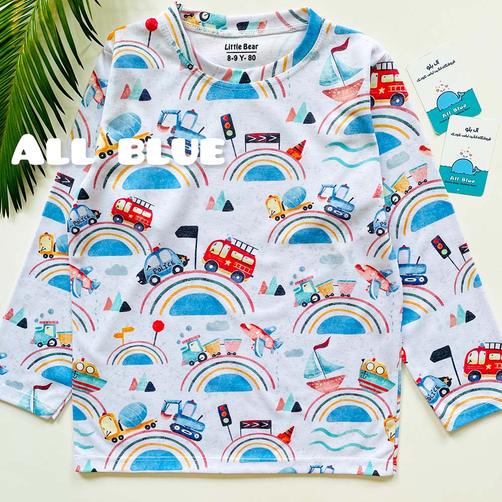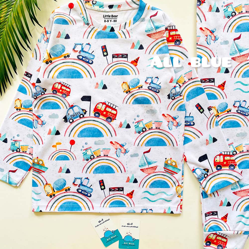 ست راحتی آستین بلند شلوار رنگین کمان وسایل نقلیه 7تا15 سال(71076)