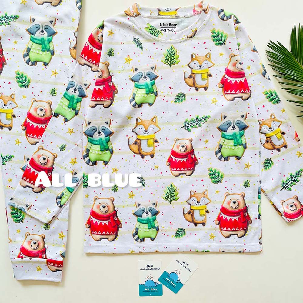 ست راحتی آستین بلند شلوار خرس قرمزی 7تا15 سال(71078)