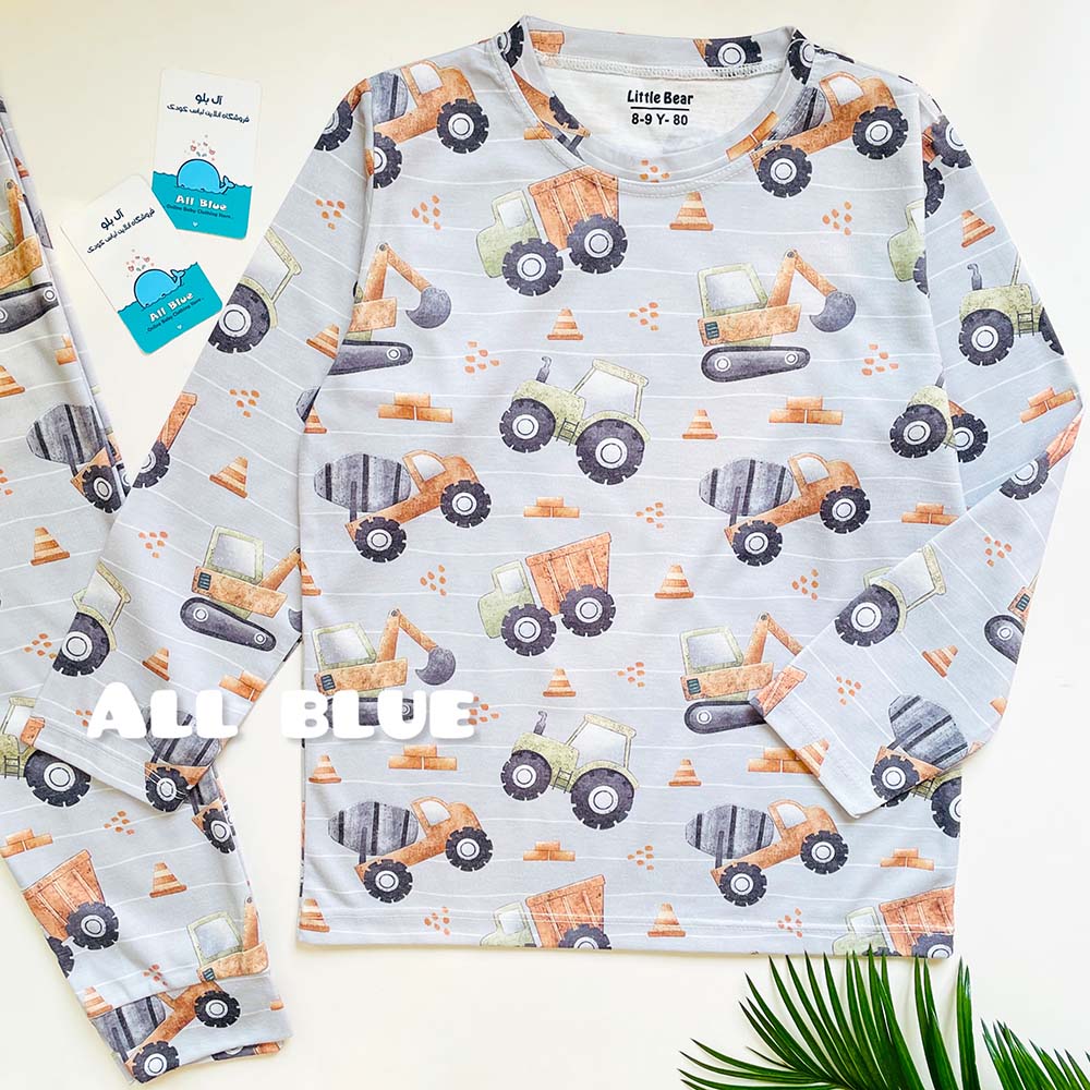 ست راحتی آستین بلند شلوار کامیون قهوه ای 7تا15 سال(71086)
