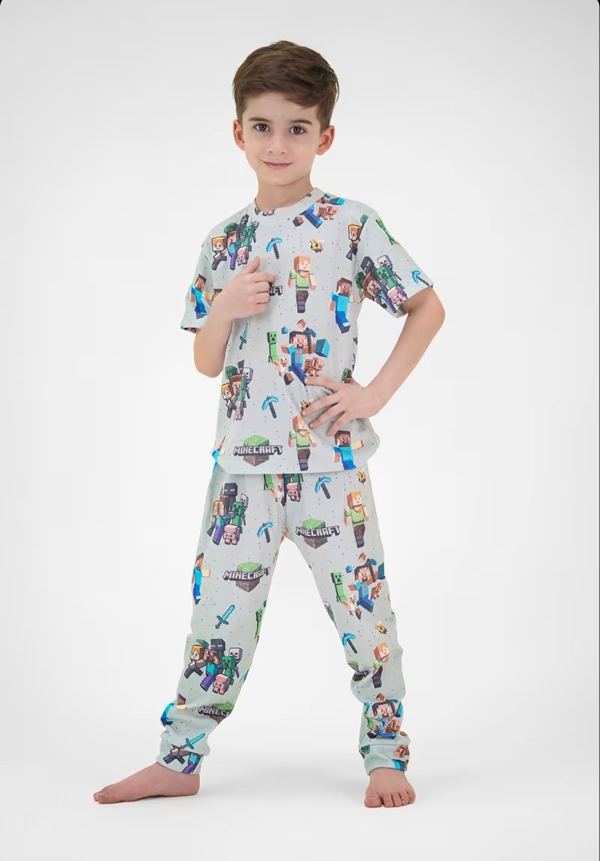 ست آستین کوتاه و شلوار ماشین ماینکرافت جذاب 1تا7 سال(71101)